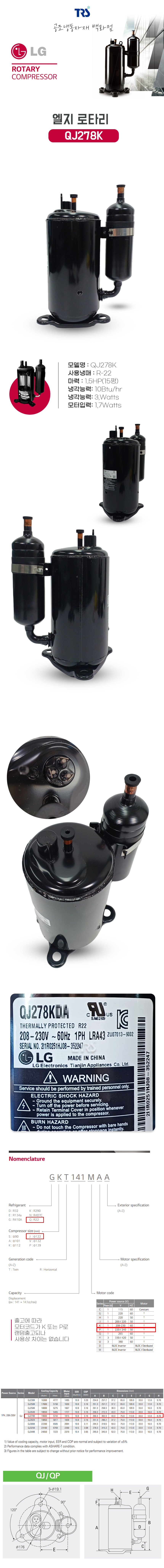LG로타리 콤프 QJ278K 1.5마력 단상