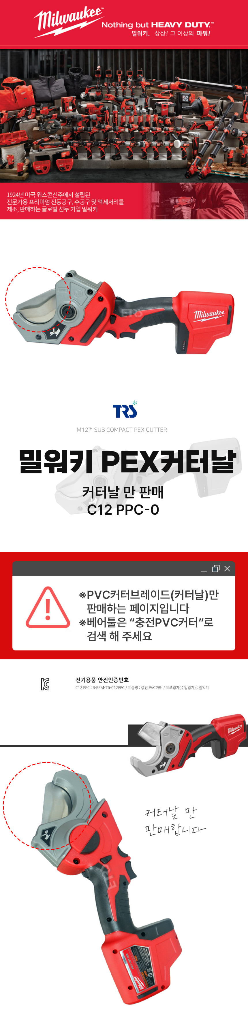 밀워키 충전 PVC 커터 브레이드(커터날/C12PPC-0)