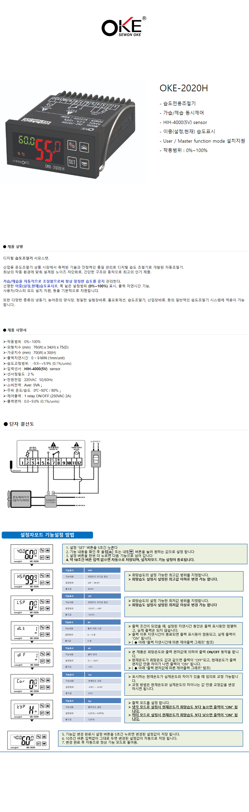 • 상품명 습도조절기(OKE-2020H)