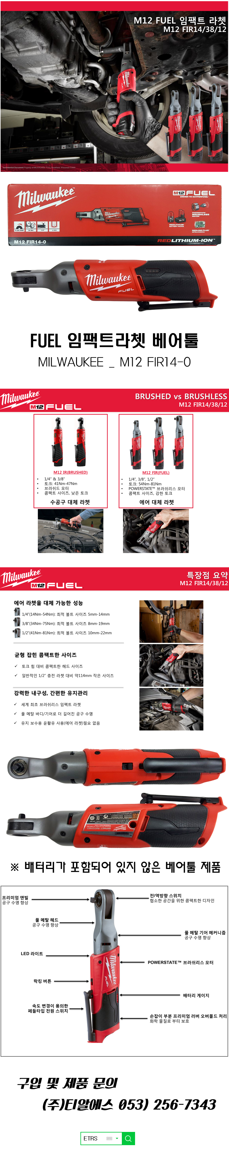FUEL임팩트라쳇(밀워키)베어툴 M12 FIR14-0
