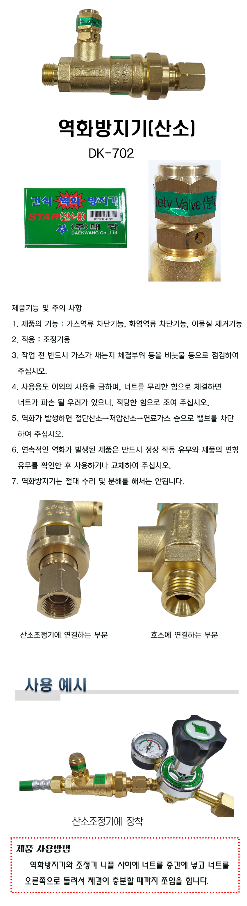 • 상품명 역화방지기(산소)/DK-702
