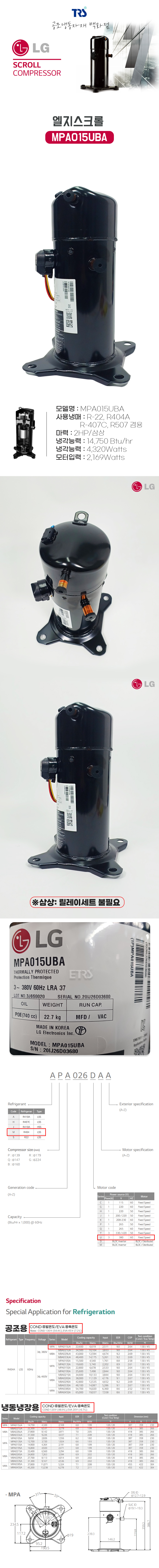 LG스크롤 콤프 MPA015UBA 2마력 삼상