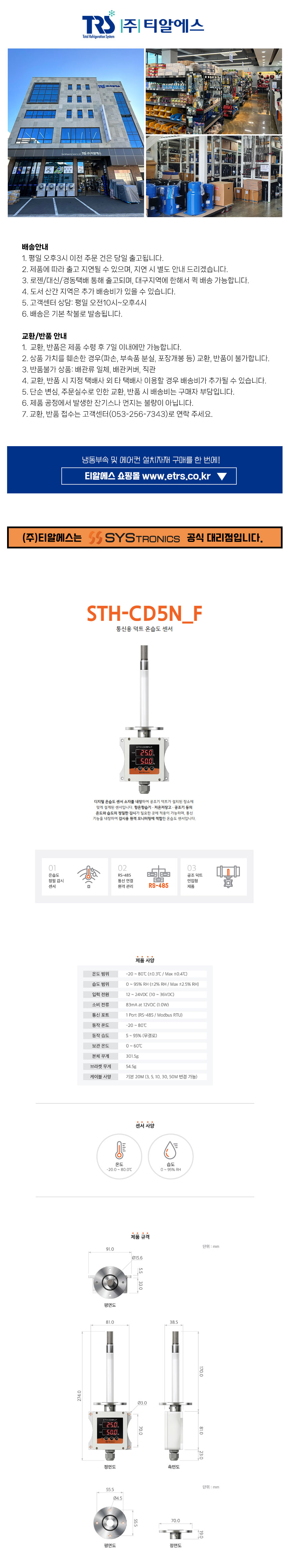 STH-CD5N_F 통신용 덕트 온습도센서