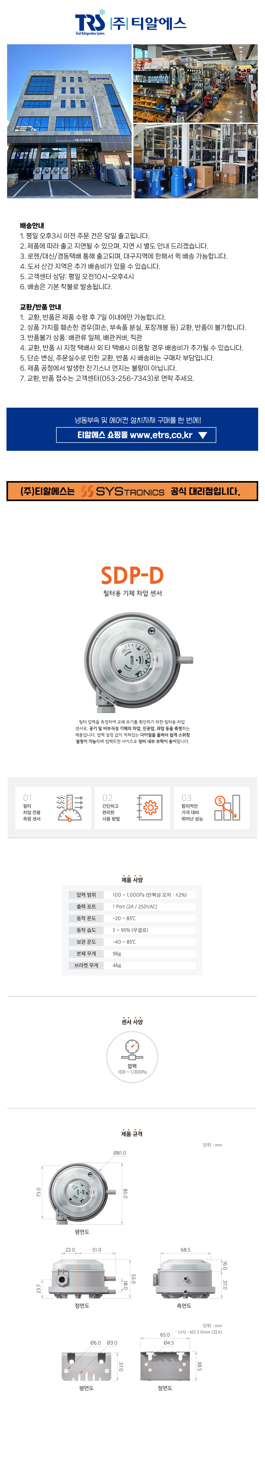 • 상품명 차압센서 SDP-D [필터차압센서]
