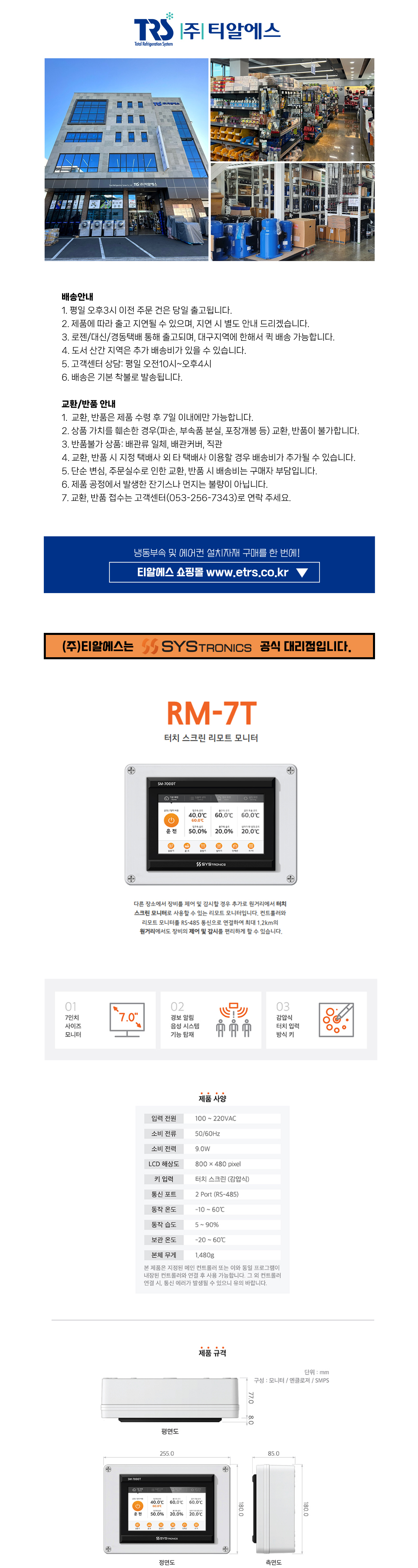 • 상품명 터치스크린 리모트모니터 RM-7T