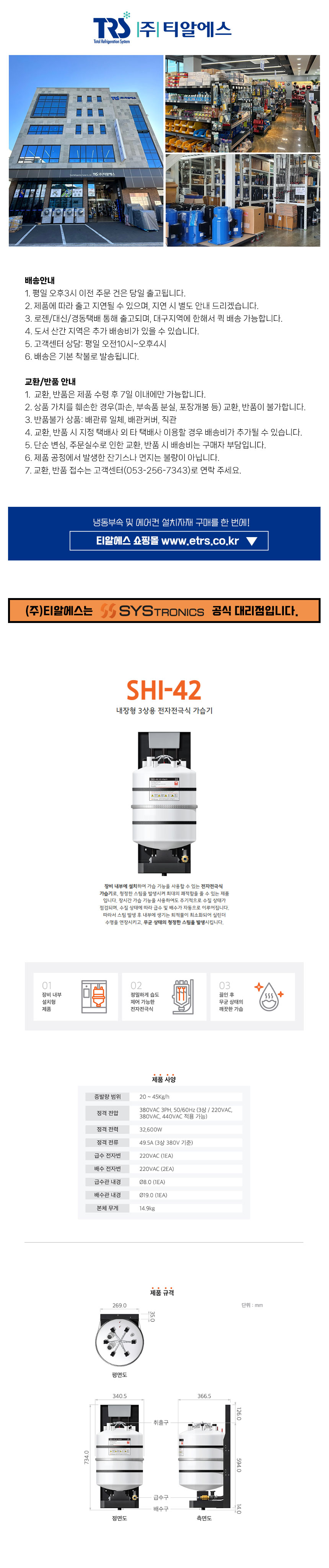 SHI-42 내장형 3상용 전자전극식 가습기