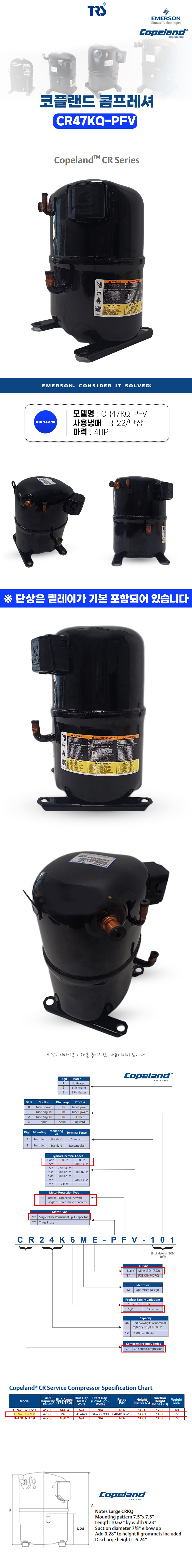 코플랜드 콤프레셔 CR47KQ-PFV 4마력 단상