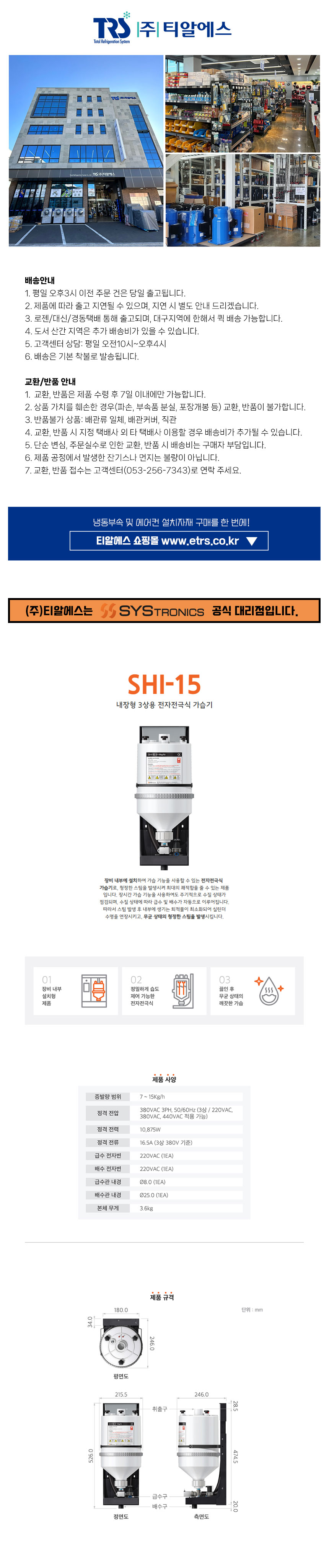 • 상품명 내장형가습기(SHI-15)취출노즐제외(380V)/증발량:7~15kg/h