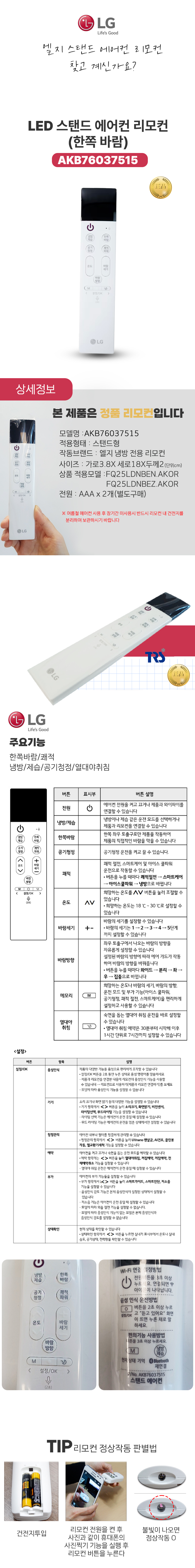 엘지 스탠드 에어컨 리모컨 AKB76037515