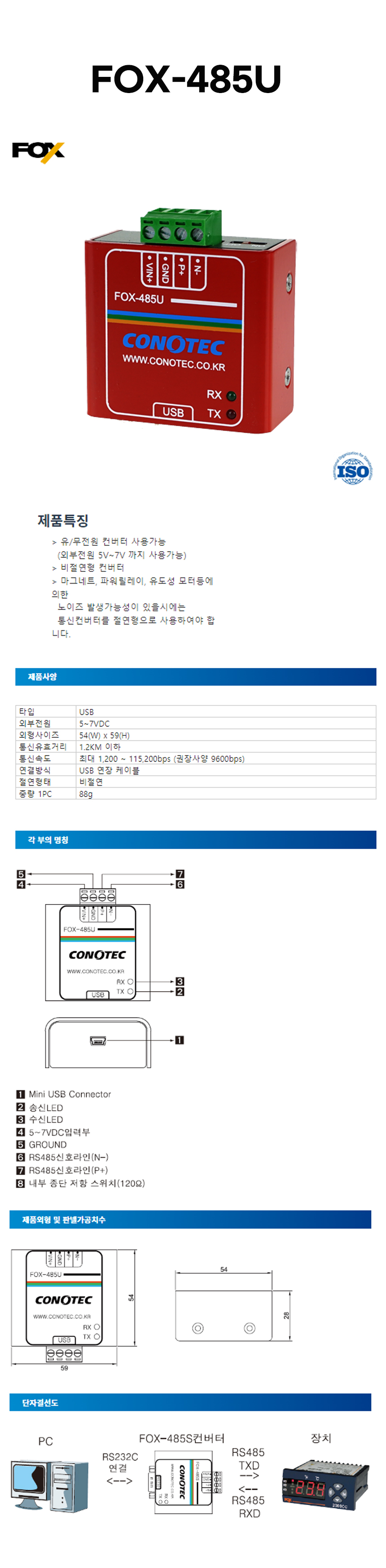 • 상품명 컨버터 FOX-485U(비절연형)◈