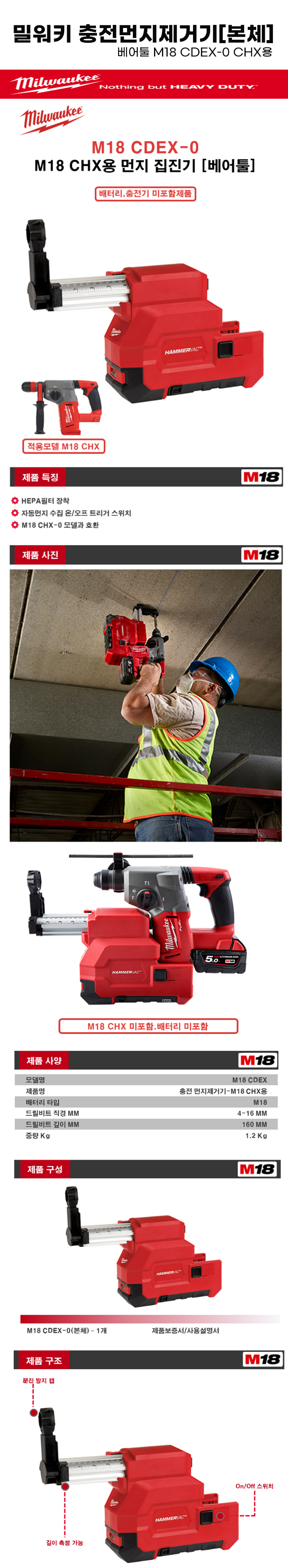 밀워키 먼지제거기기 M18 CDEX-0
